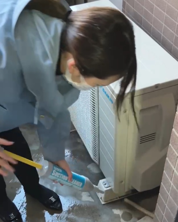 エアコンは、エアコン本体から外に出ているホースに、少しでも虫やゴキブリが入ったり、台風、雨などで泥や草が詰まると、すぐに本体から水が漏れ始めます。